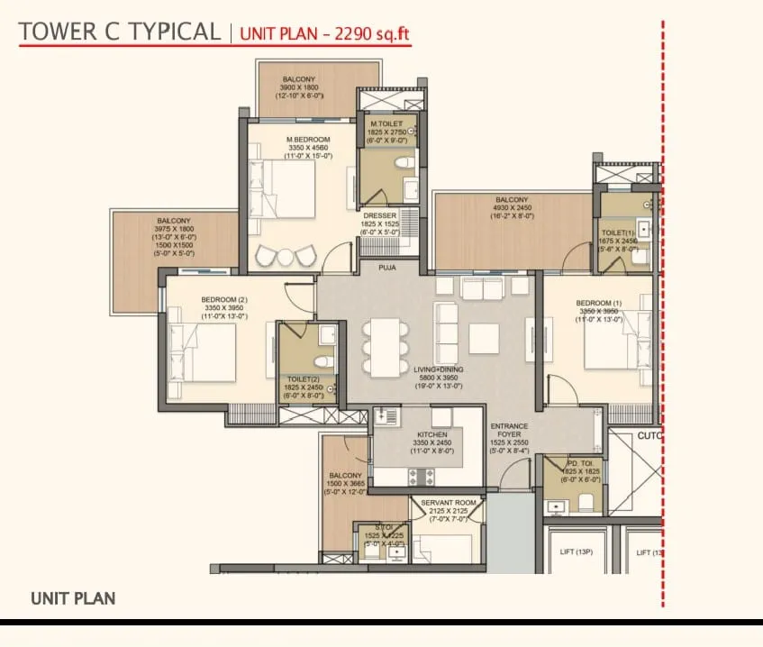 | 3 BHK + 3T | 2290 Sq.Ft | |