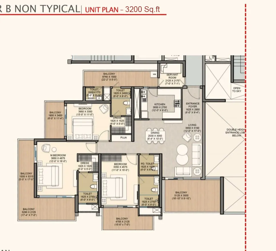 | 3 BHK + 3T | 3200 Sq.Ft | |
