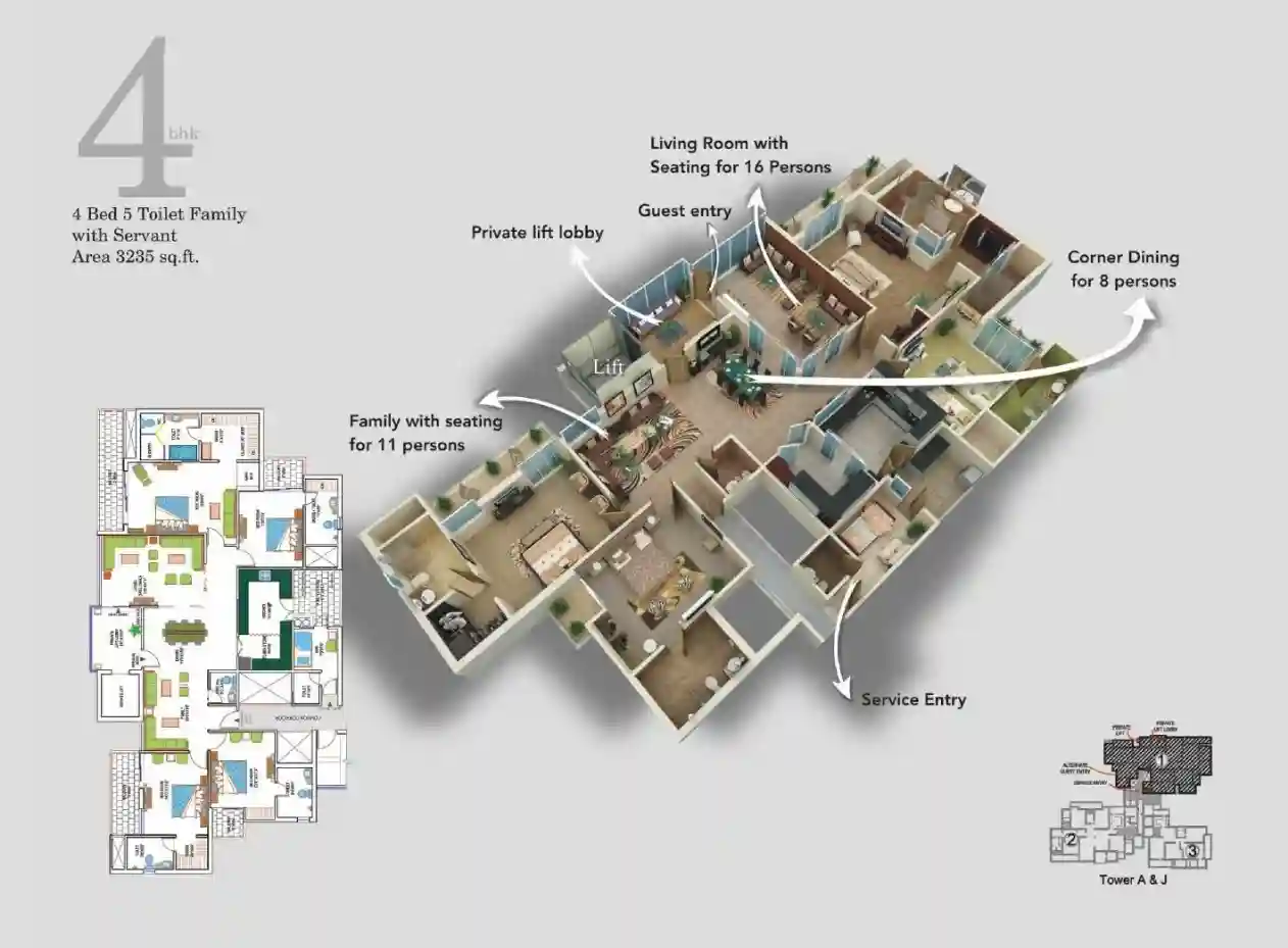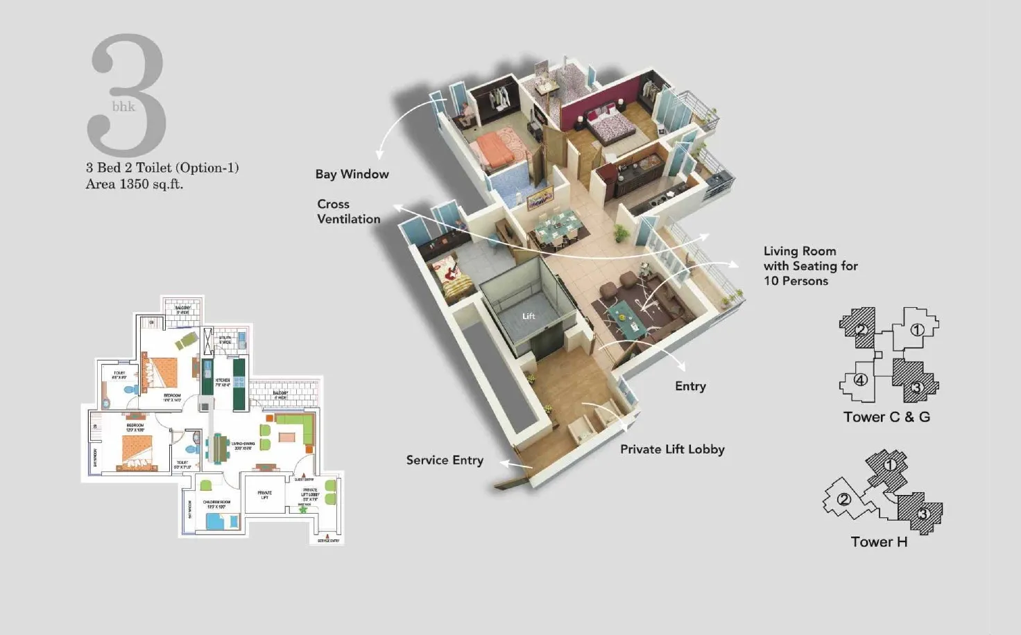 | 3 BHK + 3T | 1735 Sq.Ft. | |