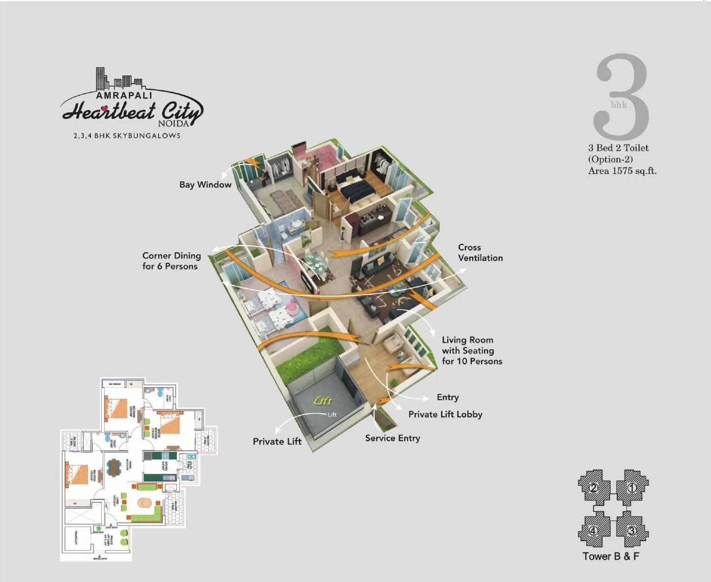 Amrapali Heartbeat City Floor Plans are meticulously designed to provide more space and a comfortable lifestyle. The project has 2, 3 and 4 BHK apartments whose programming allows for adequate sunlight and ventilation. Such units are 1195 Sq.Ft, consisting of roomy bedrooms, the latest kitchen equipment and well-fitted living rooms. On the other hand, the three-bedroomed houses range from 1350 Sq.Ft to 2125 Sq.Ft, which come with separate dining spaces and balconies. However, some four-bedroomed flats, which have from 2825 Sq.Ft to 3235 Sq.Ft, were designed for bigger families that need much room for their luxury living.