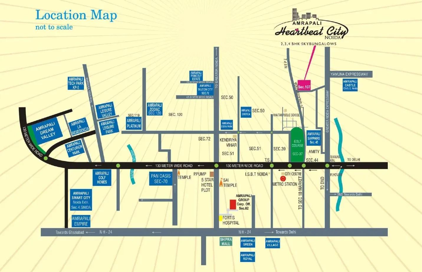 Ans: Amrapali Heartbeat City is located in Sector 107, Noida, Uttar Pradesh, India.