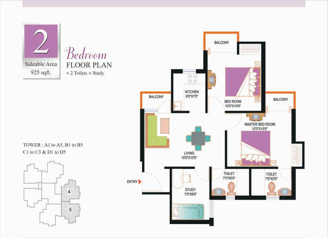 If you want to understand this project's layout or unit plan, then you should check the Amrapali Leisure Park Floor Plan. The project is available in 2 different configurations and has six varied layouts. The two different configurations are 2BHK and 3BHK. The 2BHK apartments come in 4 different sizes, which include 845, 1125, 1145 and 1225 sq. ft. The area size may differ, but the layout will include 2 Bedrooms, a drawing or dining area, balconies, and toilets.