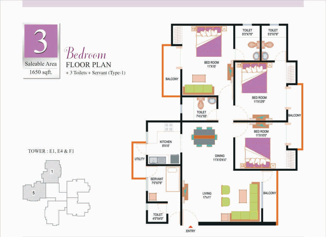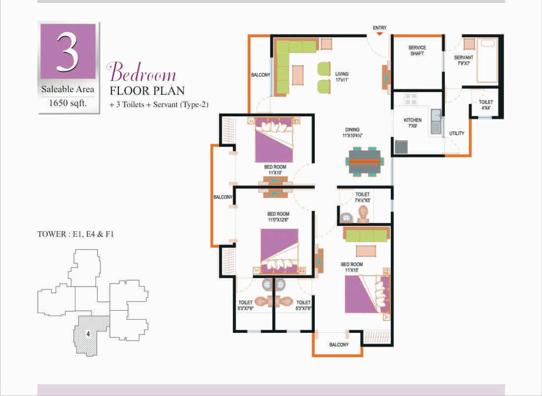 The 3 BHK apartments also come in 2 different sizes, which include 1145 and 1450 sq. ft. The apartment includes 3 Bedroom, a dining or drawing area, balconies, and toilets. It also comes with all the amenities. It has well-appointed bathrooms and balconies that have such a great view. So, overall, the project's floor plan is outstanding and offers spacious rooms and everything, making it the best place to live.