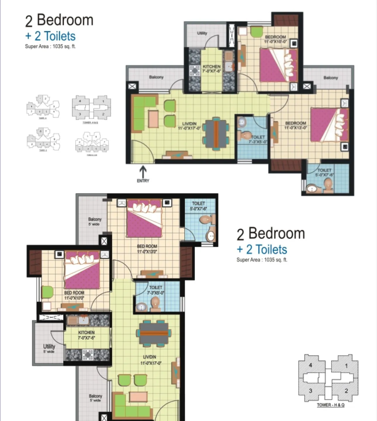 | 2 BHK + 2T | 1035 Sq.Ft. | |