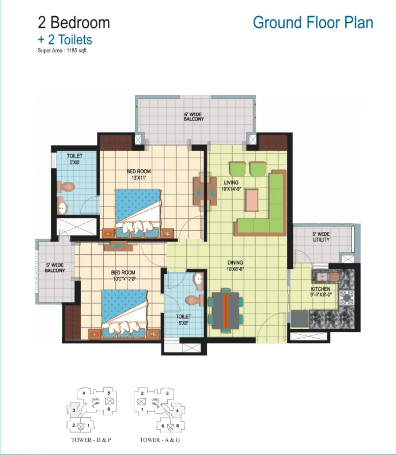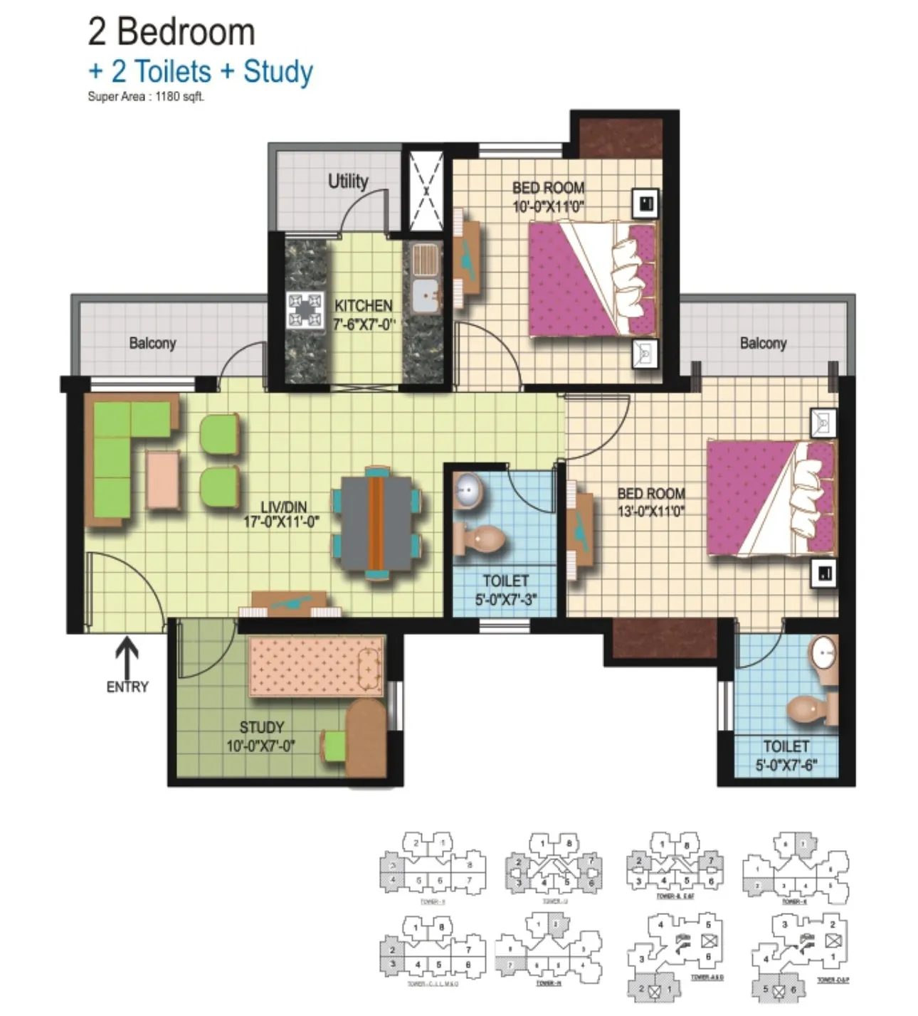 | 2 BHK + 2T | 1180 Sq.Ft. | |