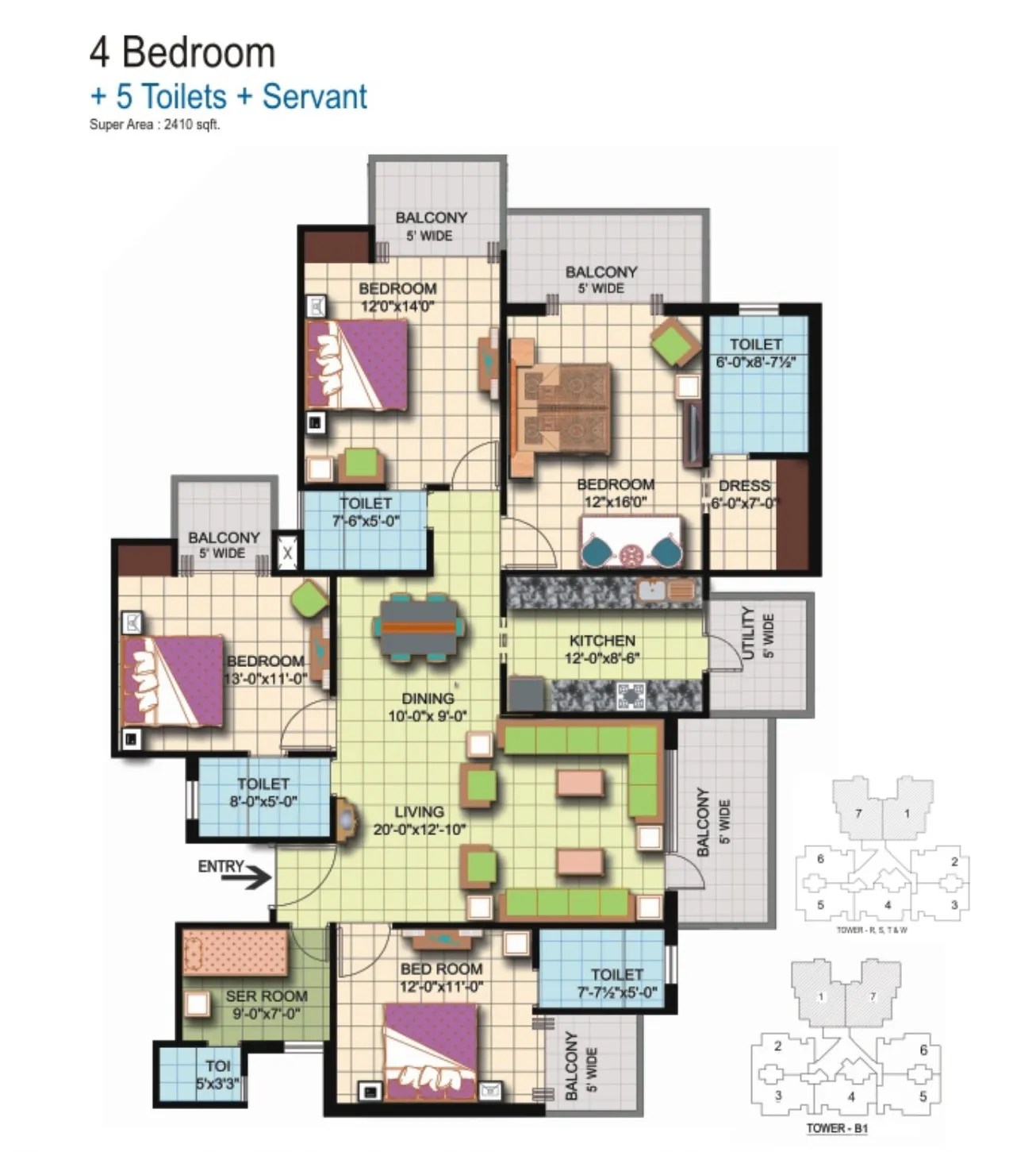 | 4 BHK + Servant | 2410 Sq.Ft |
