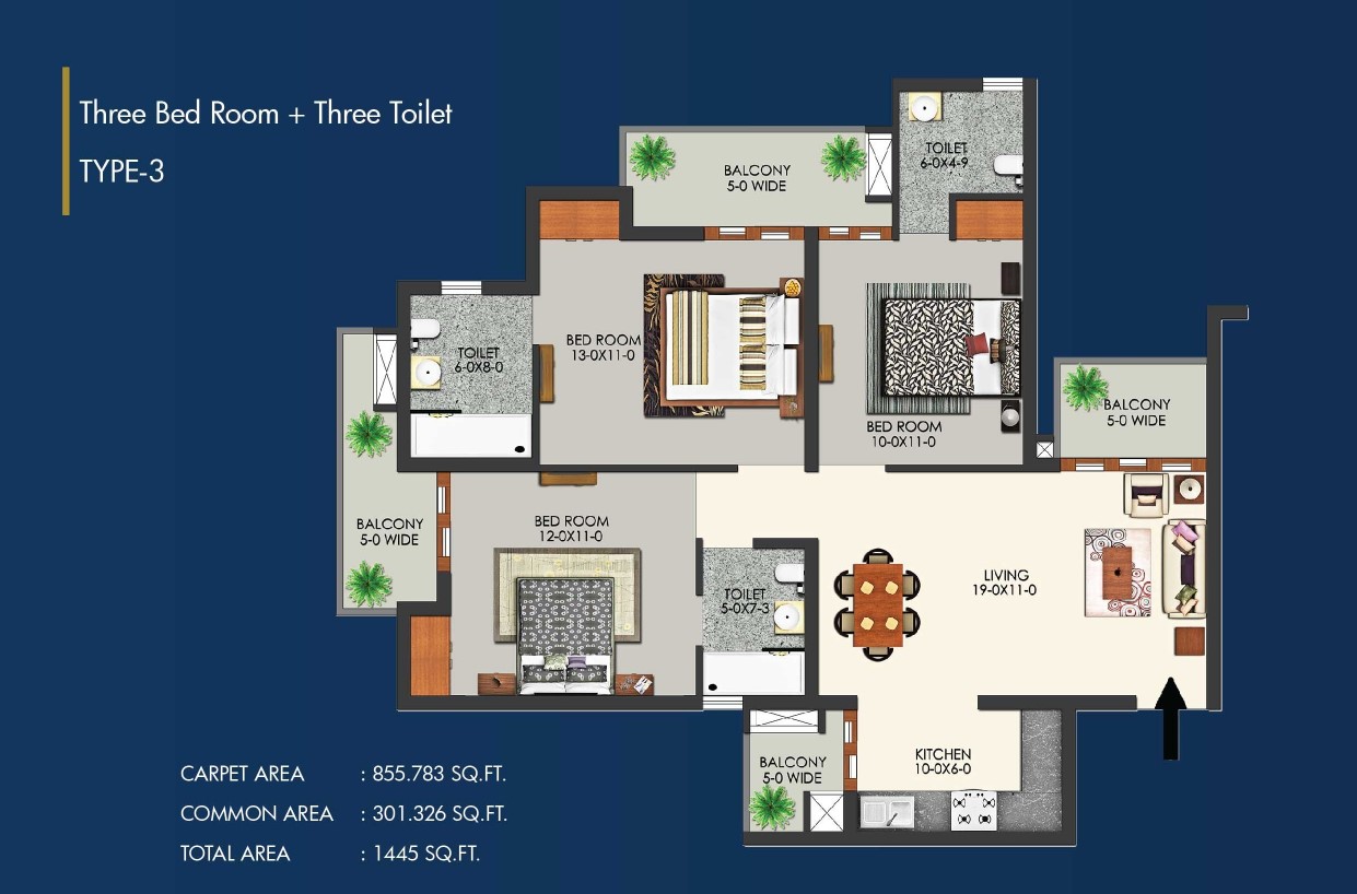 It spreads across vast acres of green landscapes, offering residents a calm atmosphere. Each flat here has been carefully planned to get maximum sun exposure and ventilation so that inhabitants can enjoy their living rooms as well as bedrooms fully lit with natural day light.