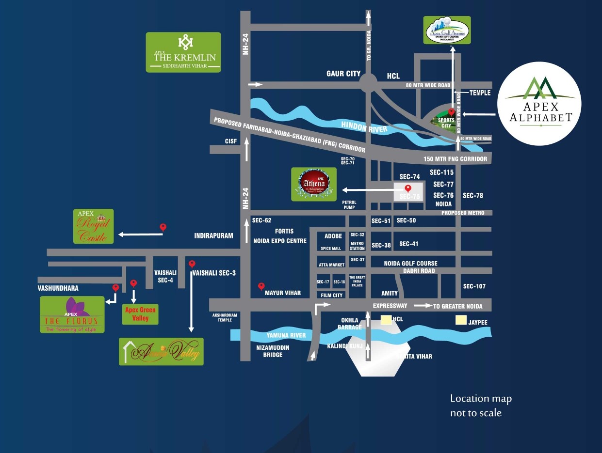 Situated strategically in Greater Noida West Apex Alphabet is one of the most desired areas of the National Capital Region (NCR). Major highways near it include Yamuna Expressway as well as Noida-Greater Noida Expressway.