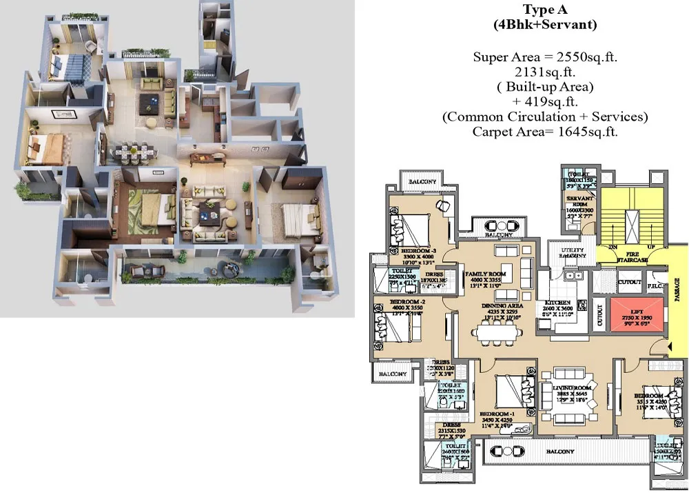 | 4 BHK + 4T | 2550 Sq.Ft. |