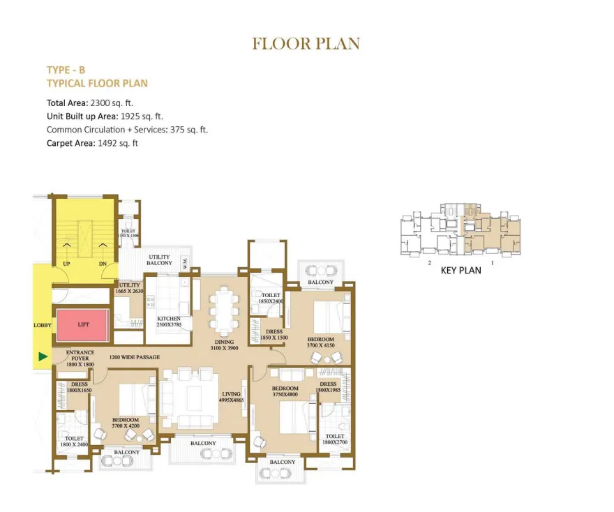 | 3 BHK + 3T | 2300 Sq.Ft | |