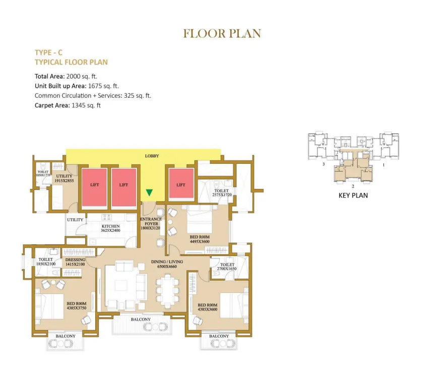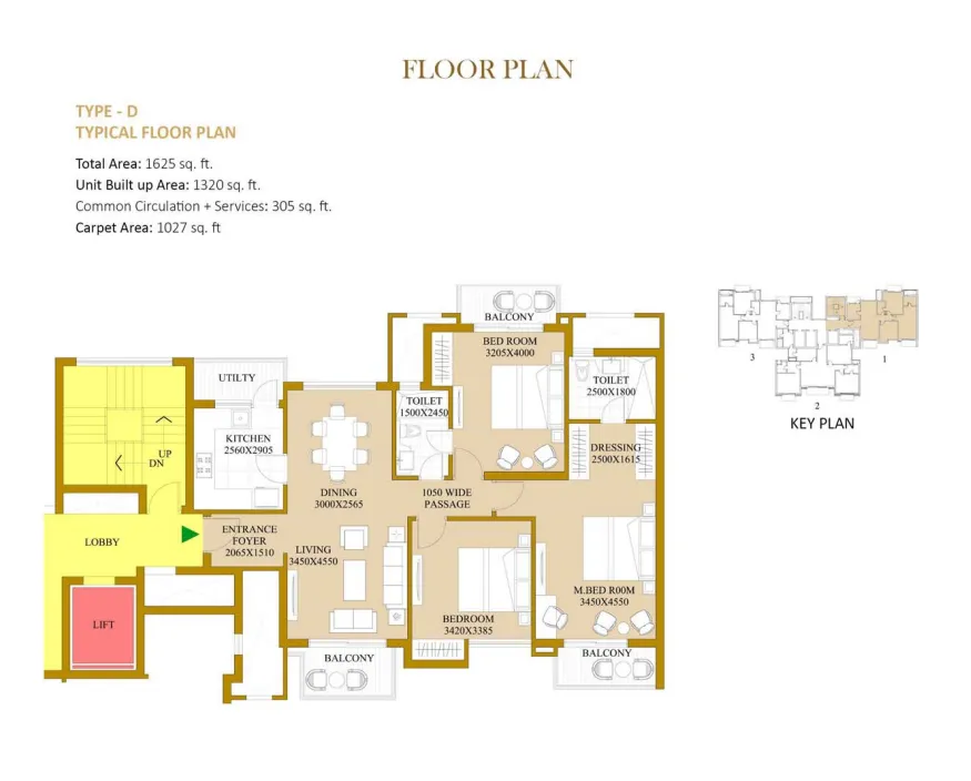 | 3 BHK + 3T | 1625 Sq.Ft | |