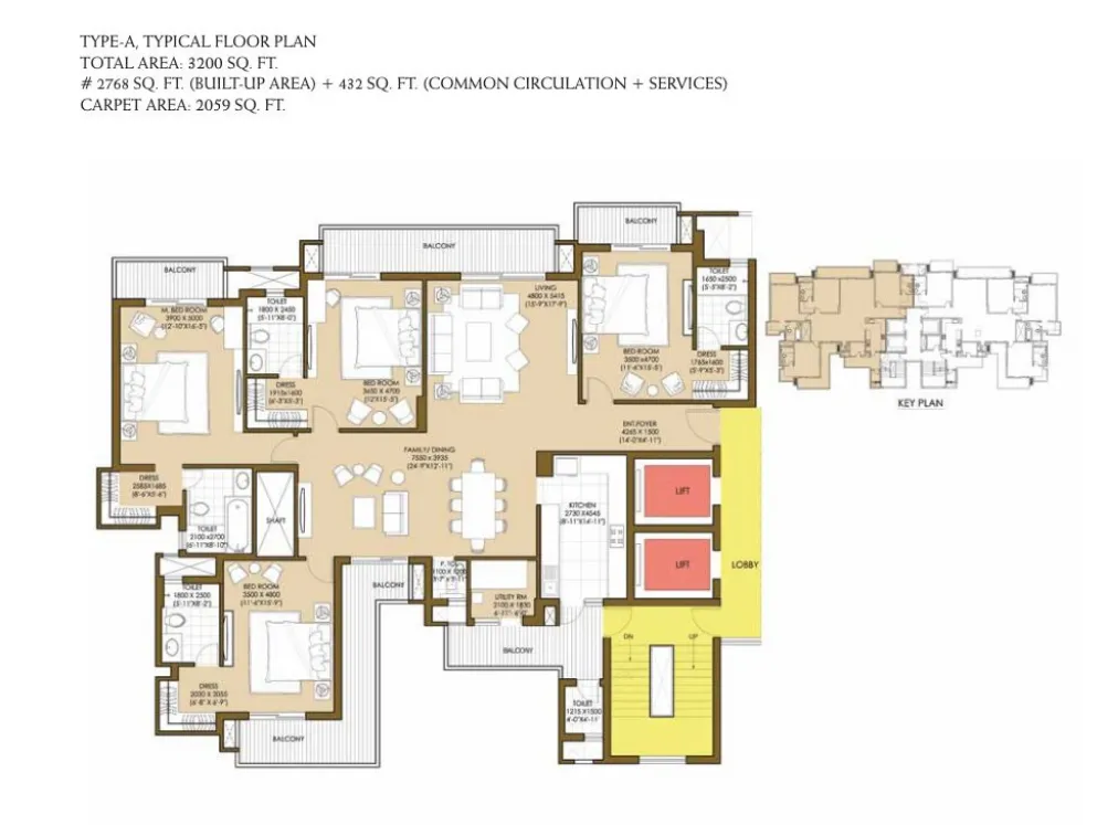 | 4 BHK + 4T | 3200 Sq.Ft |