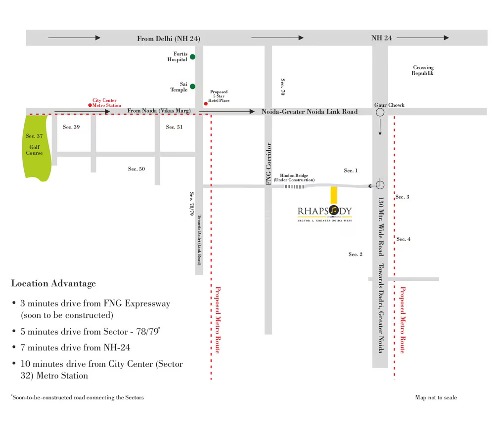 ATS Rhapsody resides in Sector 1, Greater Noida West, which is one of the most demanded residential locations in the National Capital Region. This location is highly placed with great connections to major highways and public transportation, as well as other important areas within Noida and Greater Noida.