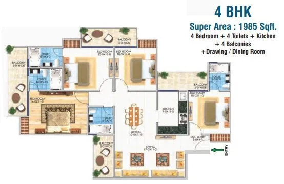 | 4 BHK + 4T | 1985 Sq.Ft. | |
