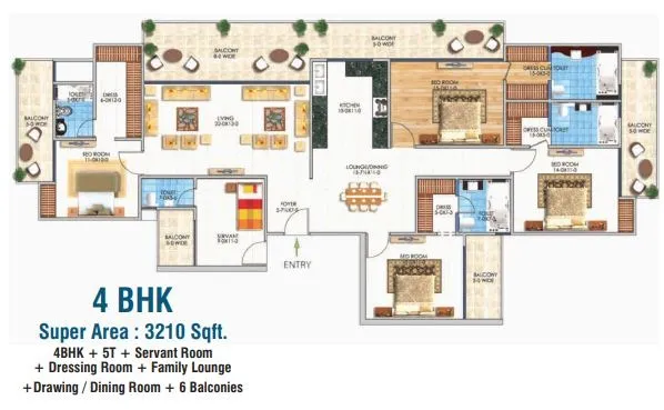 | 4 BHK + 4T + Servant | 3210 Sq.Ft. | |