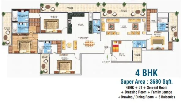 | 4 BHK + 6T + Servant | 3610 Sq.Ft. |