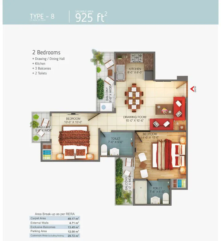 - Sizes : 925 Sq.Ft To 1995 Sq.Ft
