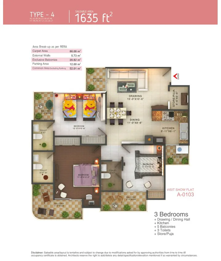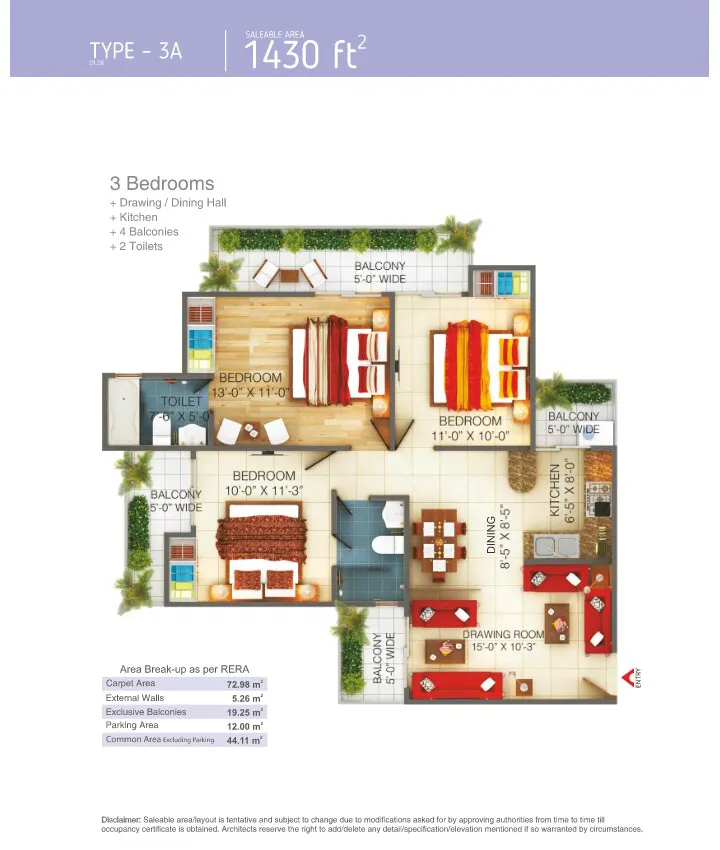 | 3 BHK + 3T | 1459 Sq.Ft. | |