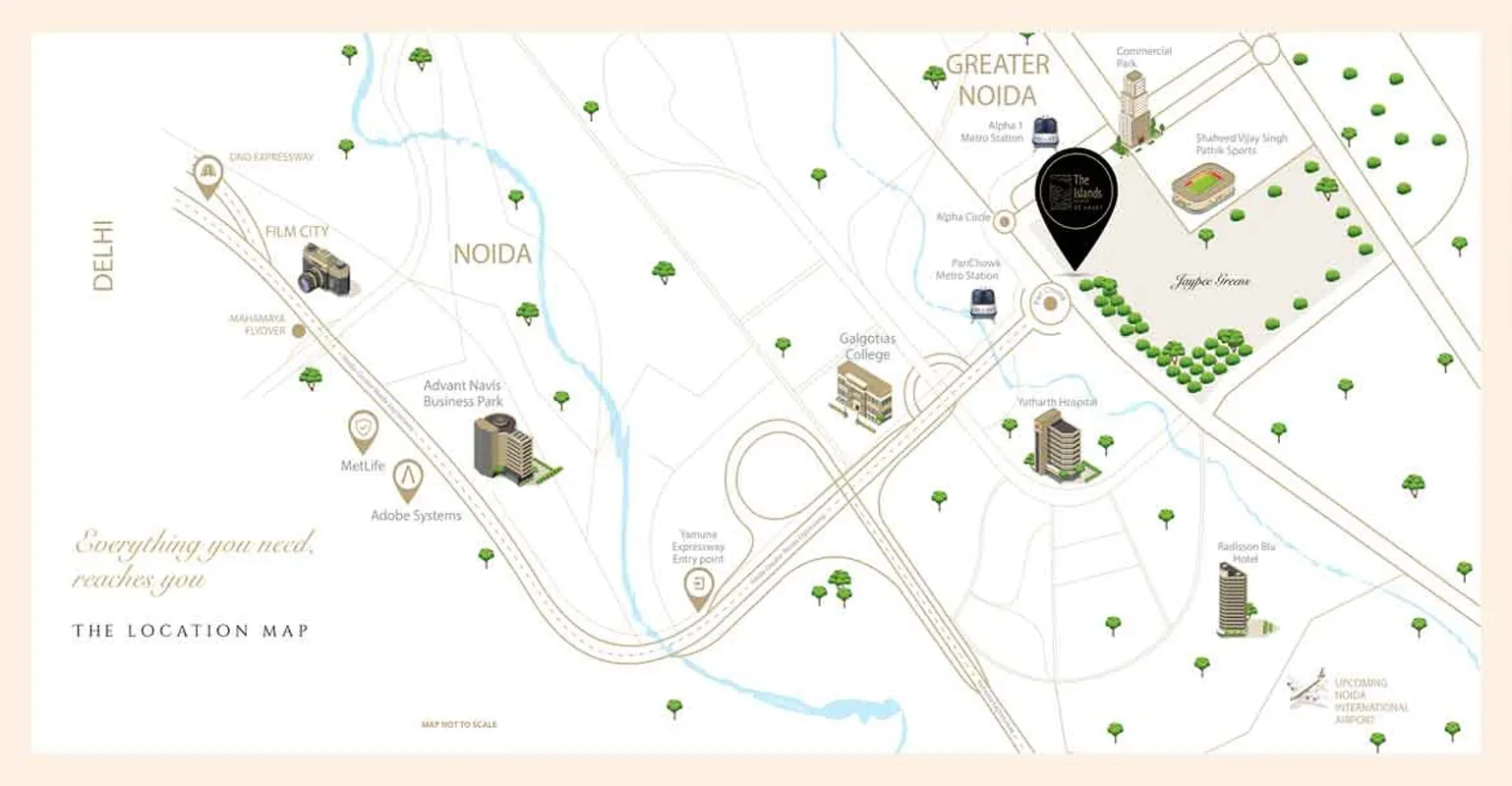 - Surajpur and Ecotech 2 industrial areas are about 10 km from Jaypee Greens.