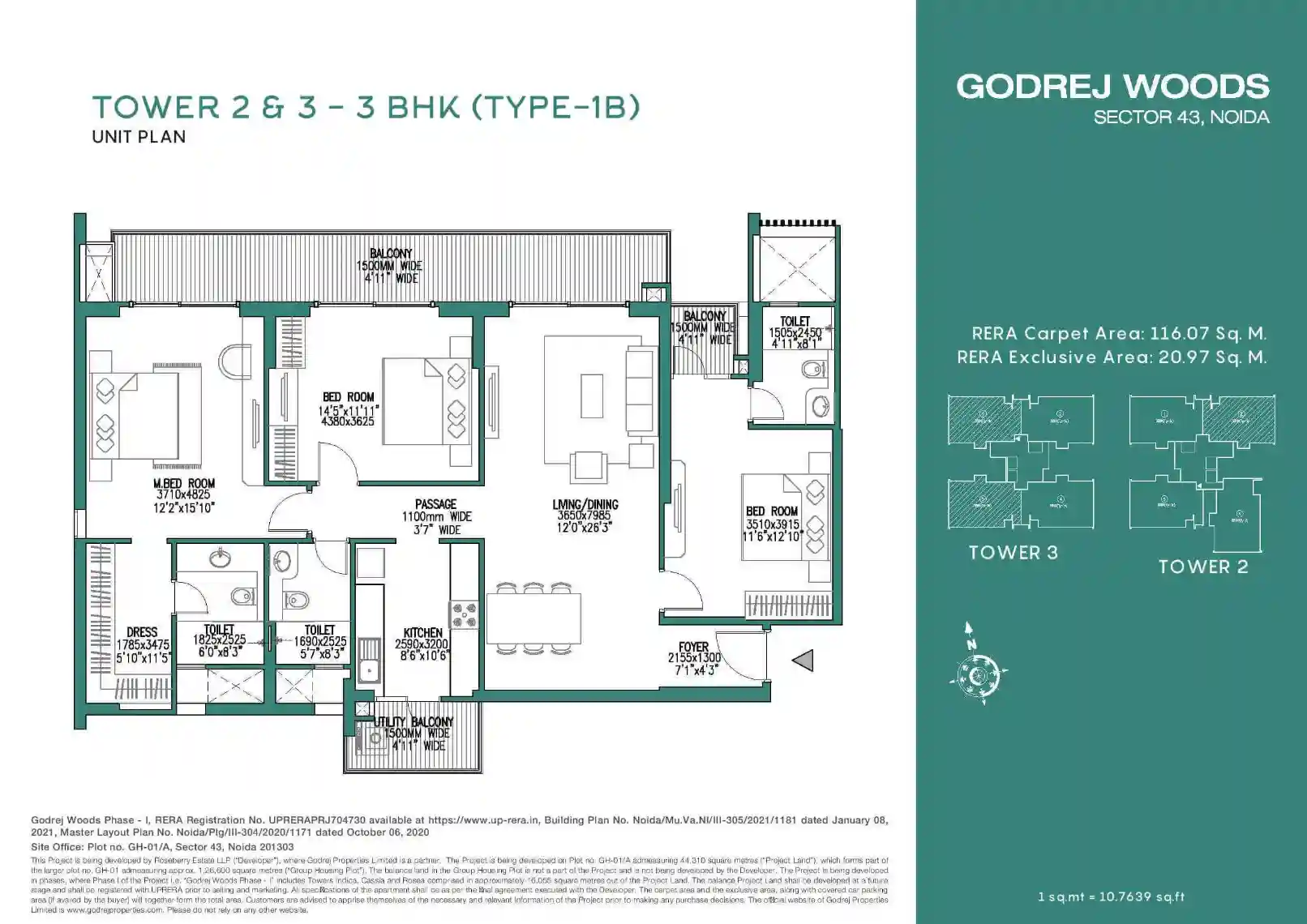 | 3 BHK + 3T | 1249 Sq.Ft. |