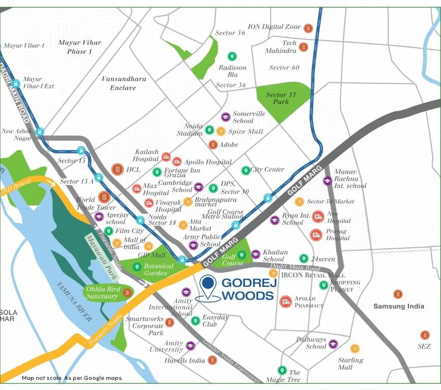 Ans: Godrej Woods is located in Sector 43, Noida, Uttar Pradesh, India.