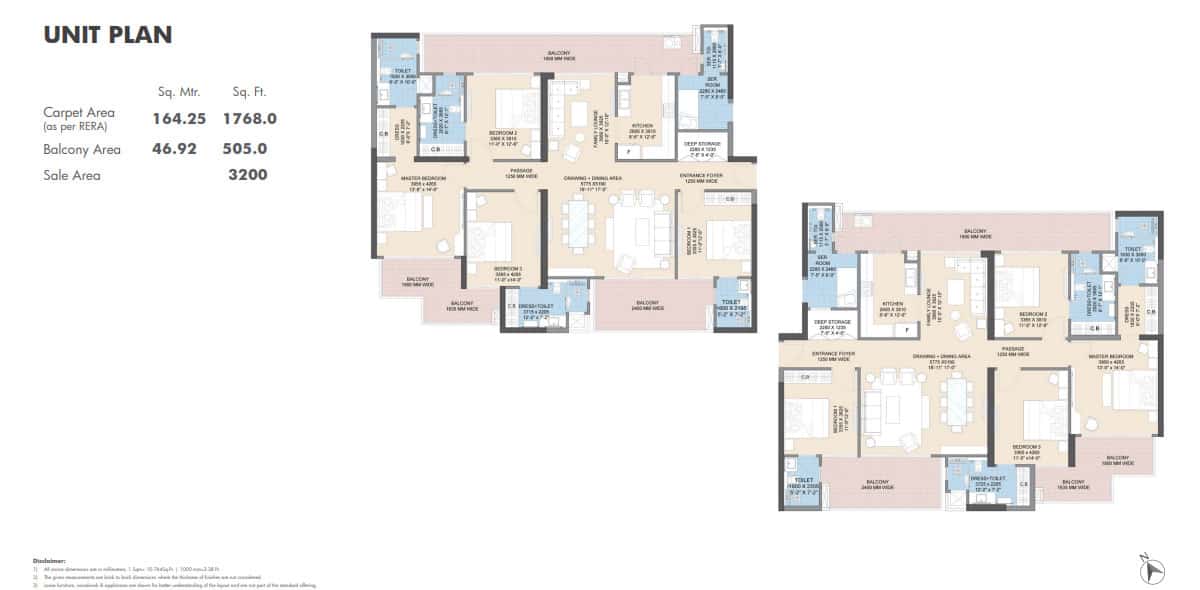 The carpet area is 164.25 sq m and 17.68 sq m, while the balcony area is 46.92 sq. m. and approximately 505.0 sq m. The total sale area is 3000 sq m. Investing in a Gulshan Avante unit plan is one of the greatest investments. The overall floor plan is outstanding, and if you want to get a better idea about it, you should check the Gulshan Avante Floor plan in the best way possible.