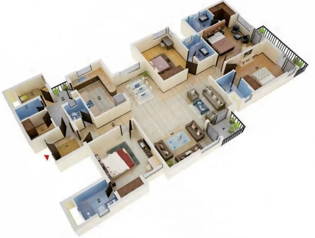 | 3 BHK + 4T | 2105 Sq.Ft. | |