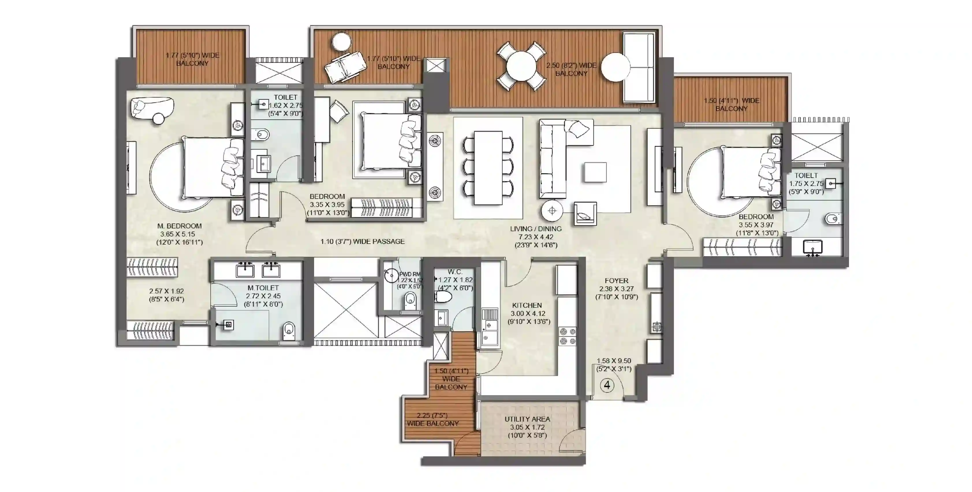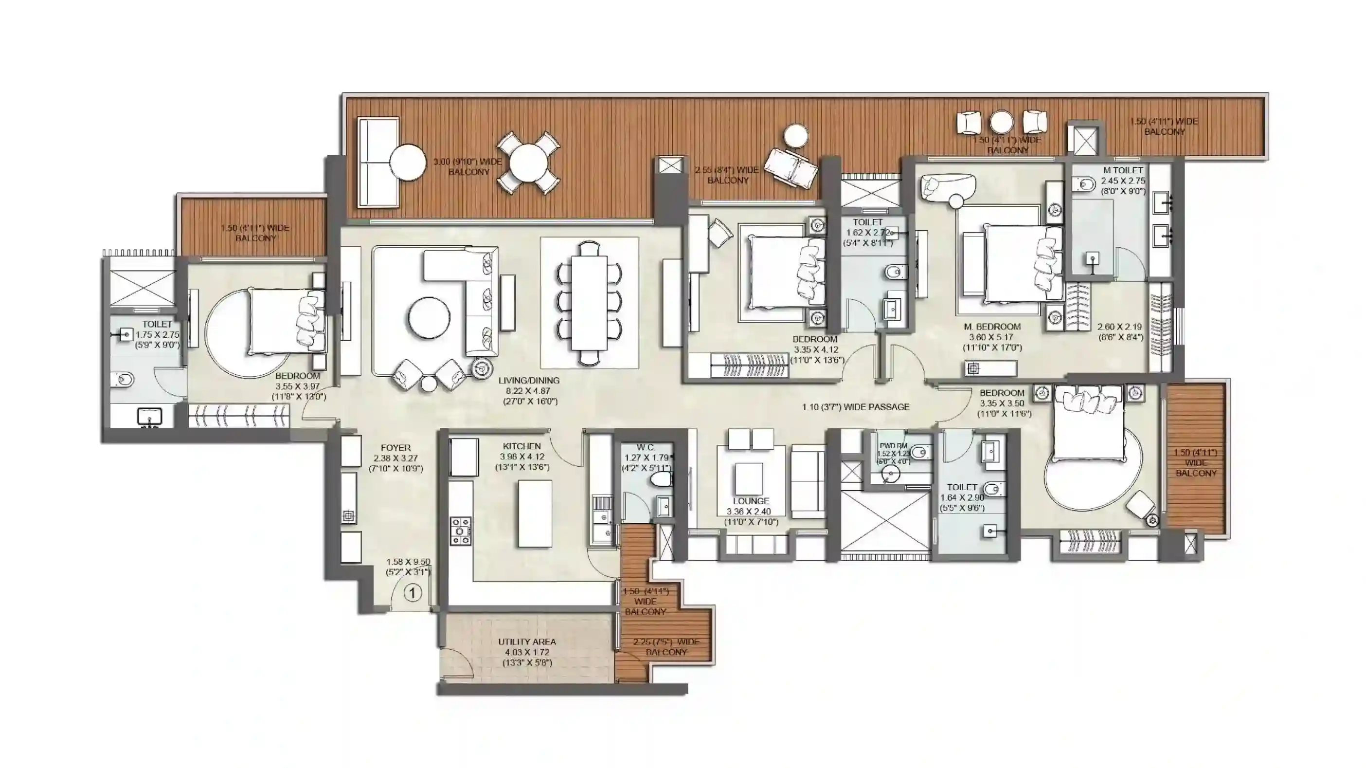 | 3 BHK + 4T | 3047 Sq.Ft. | |