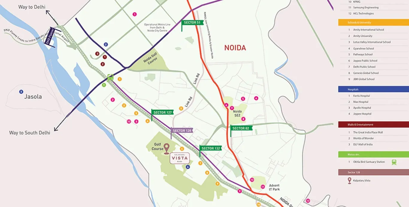 - The projects provide quick access to the Delhi Metro airport in Greater Noida, the 8-lane DND Flyway, the Noida Greater Noida Expressway and the Yamuna Expressway, providing unmatched connectivity.