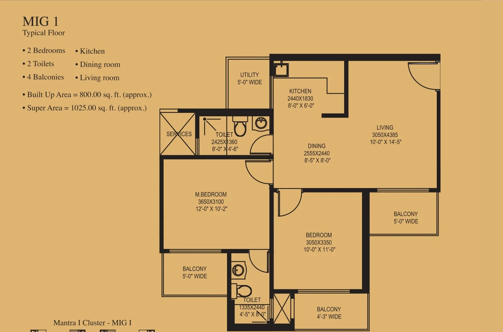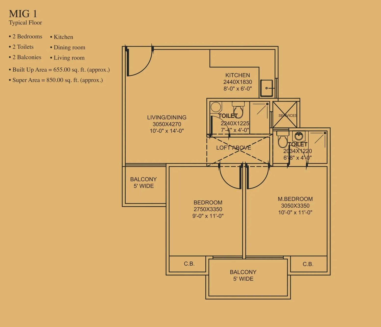 - Sizes : 850 Sq.Ft To 1400 Sq.Ft