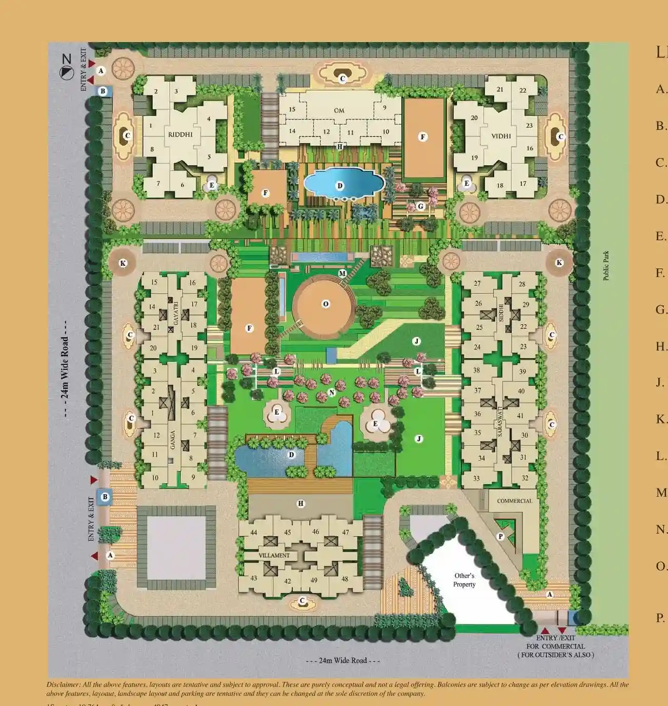 Mahagun Mantra's Site Plan is aimed at blending luxury, comfort and functionality harmoniously. The project consists of 2 and 3 BHK apartments that are meticulously planned in vast green spaces. Wide internal roads, sufficient car parking space and separate recreational areas are part of the layout. This makes the environment peaceful and pleasant when landscaped gardens, jogging tracks and children's play zones are meshed together. The location of clubhouse as well as sports facilities and swimming pool was done in such a way it can be easily accessed by all inhabitants. Green living is a priority in this development scheme and enhances the overall living experience by making the utilization of space more effective.