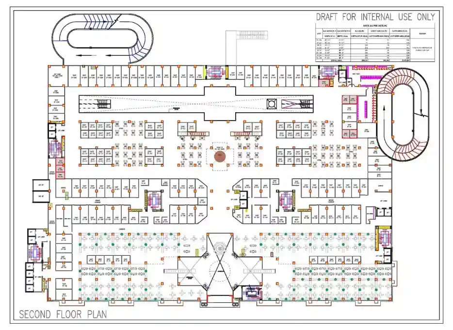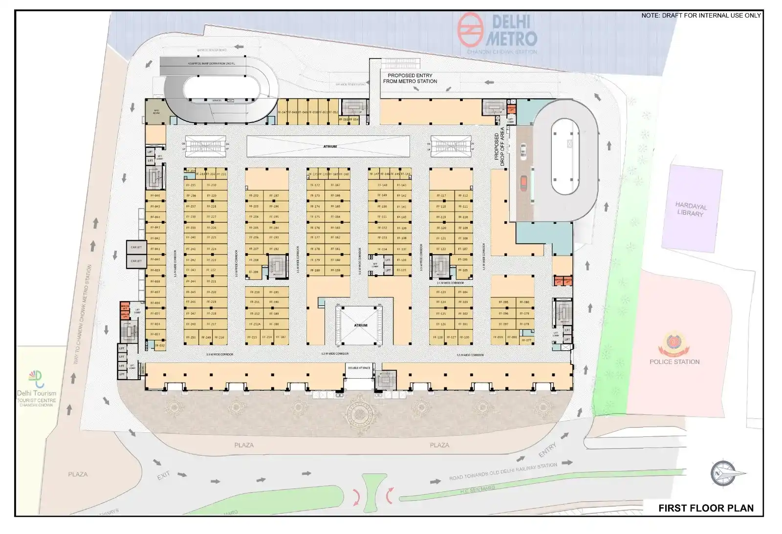 There are many units in this commercial project, which is spread over a land area of 5 acres. Omaxe Chowk offers two types of layouts and one alternative configuration for each of its many units. It is possible to choose from several floor plans for this distinctively built commercial shop, with super areas ranging from 40 to 50 square feet. This rental property has shops on the ground floor, 1st floor and 2nd floor that range from 244 to 1116 Sq.Ft. It's a great opportunity to have prestigious retail and other commercial spaces in several sizes. The iconic architecture of Omaxe Chowk combines Indian, Mughal and British elements. There's also multi-level parking for over 2100 cars, 81 tourist buses, direct access from Chandni Chowk metro, designated loading and unloading bays, an exclusive business concierge, privileged membership cards, a rooftop dining area and grand events.
