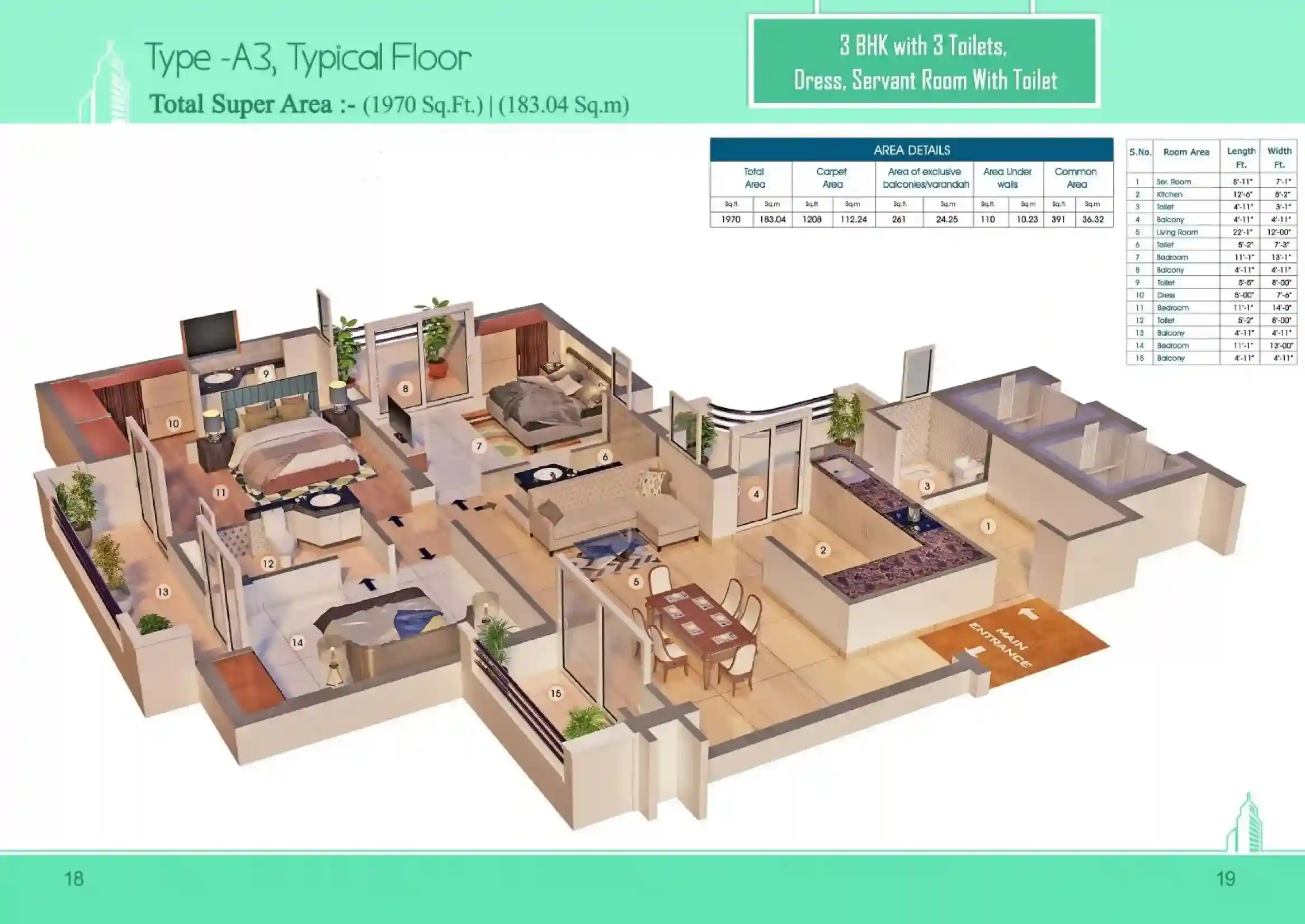 | 3 BHK + 3T | 1970 Sq.Ft | |