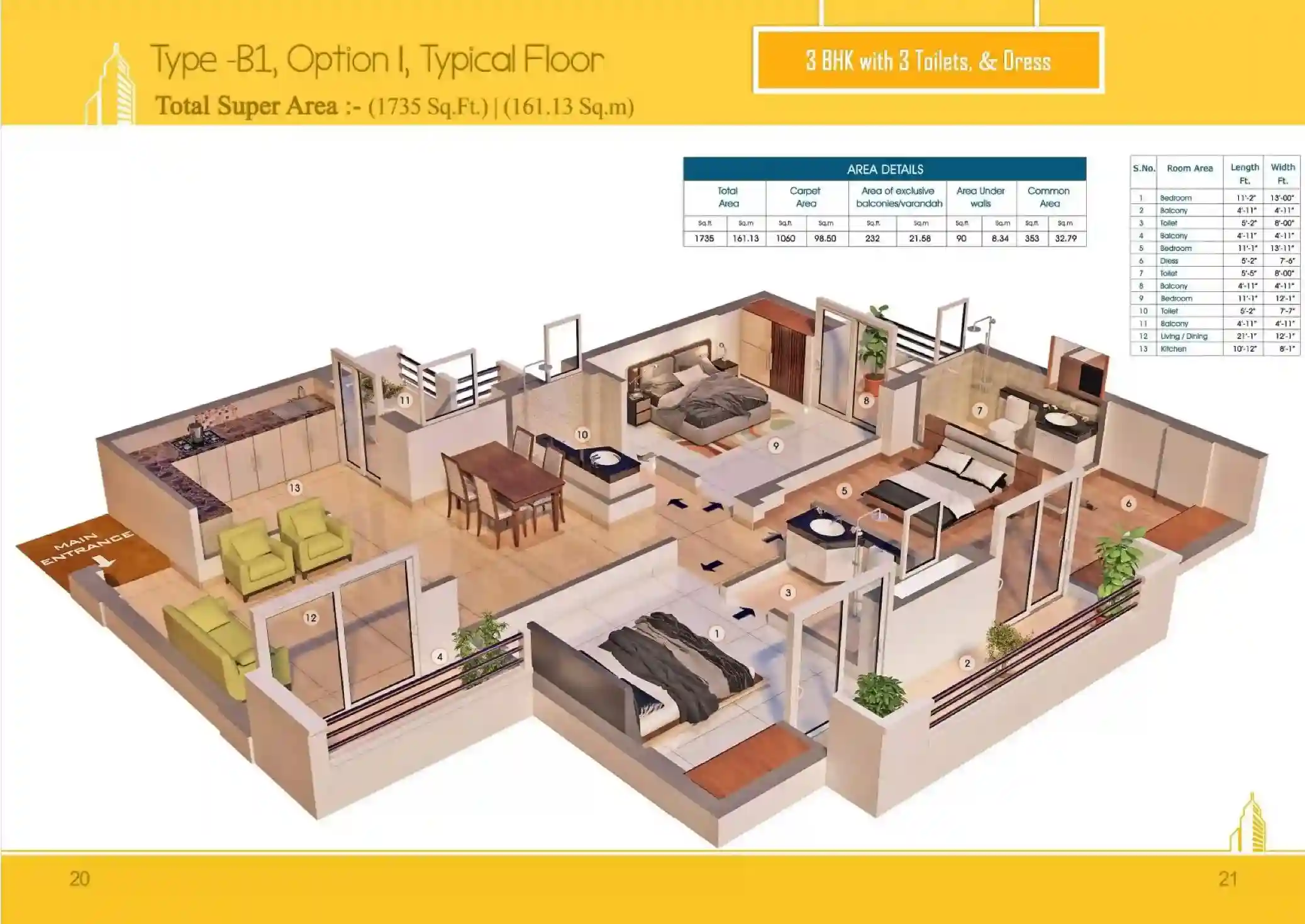 | 3 BHK + 3T | 1735 Sq.Ft | |