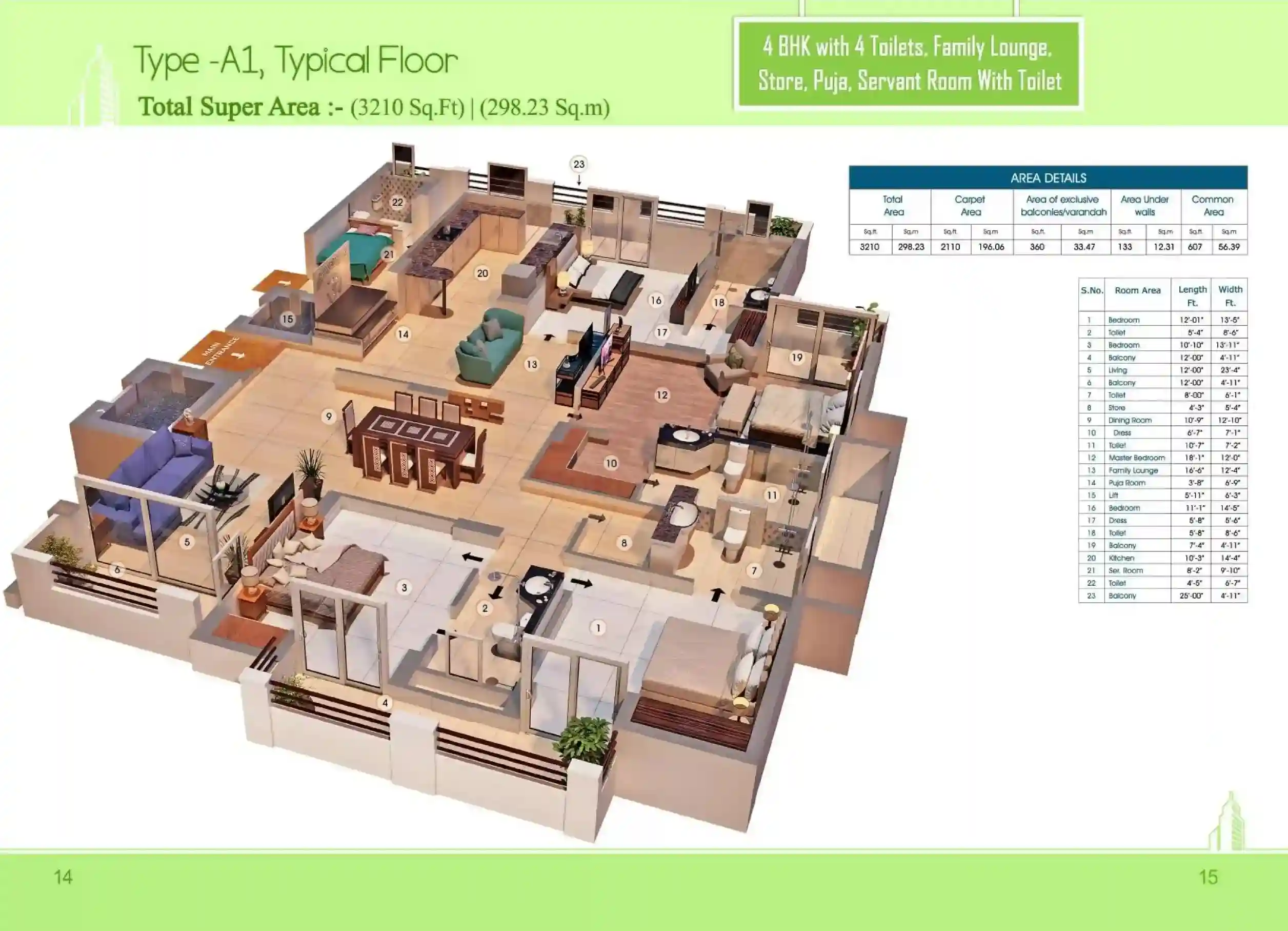 | 4 BHK + 4T | 3210 Sq.Ft | |