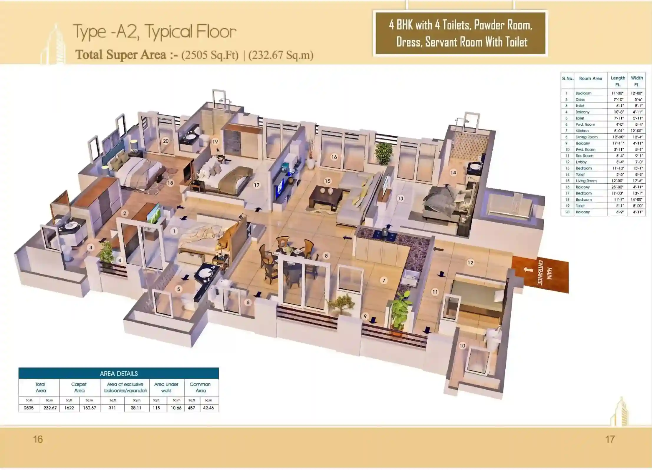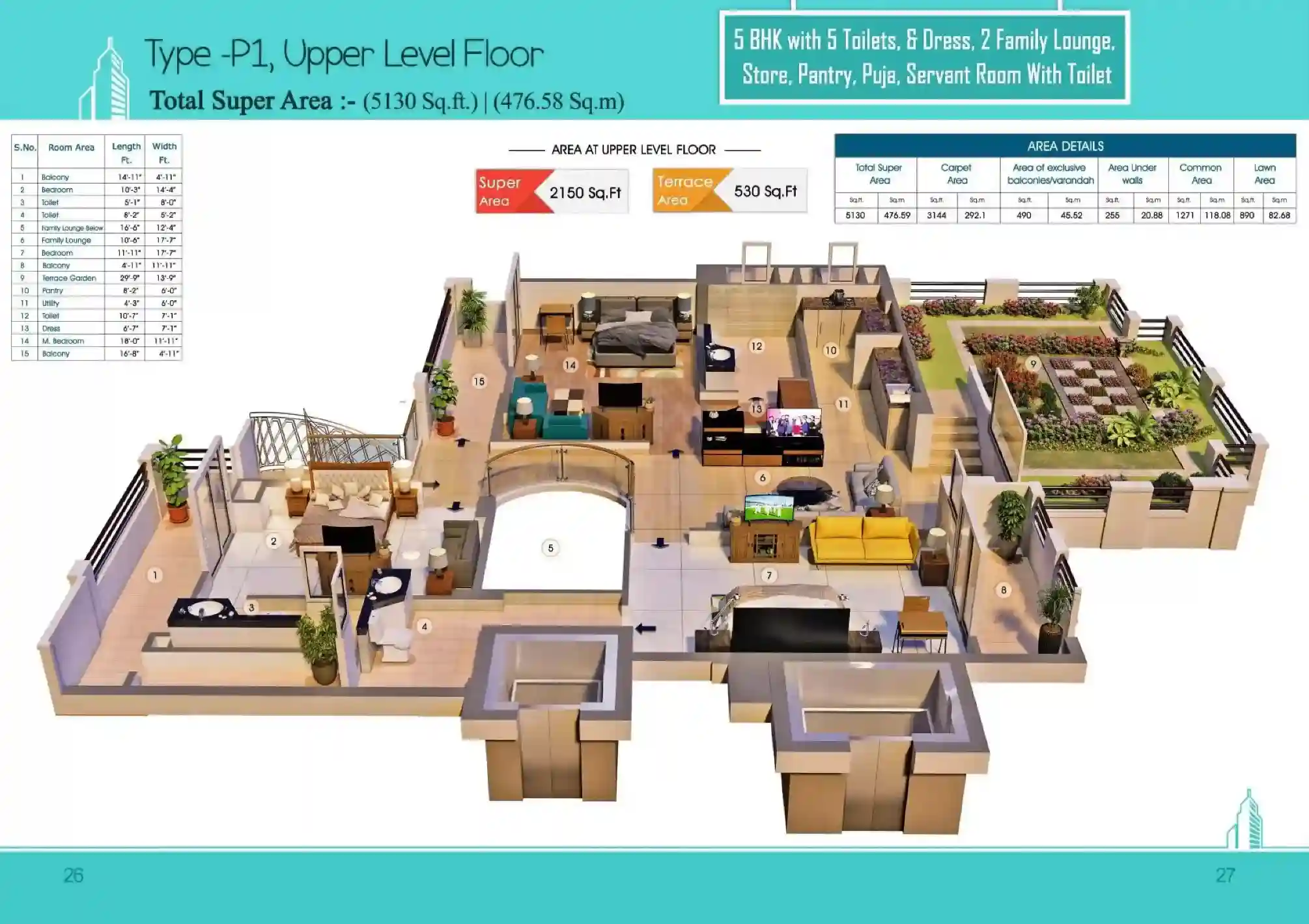 | 5 BHK + 5T (Penthouse) | 5110 Sq.Ft |
