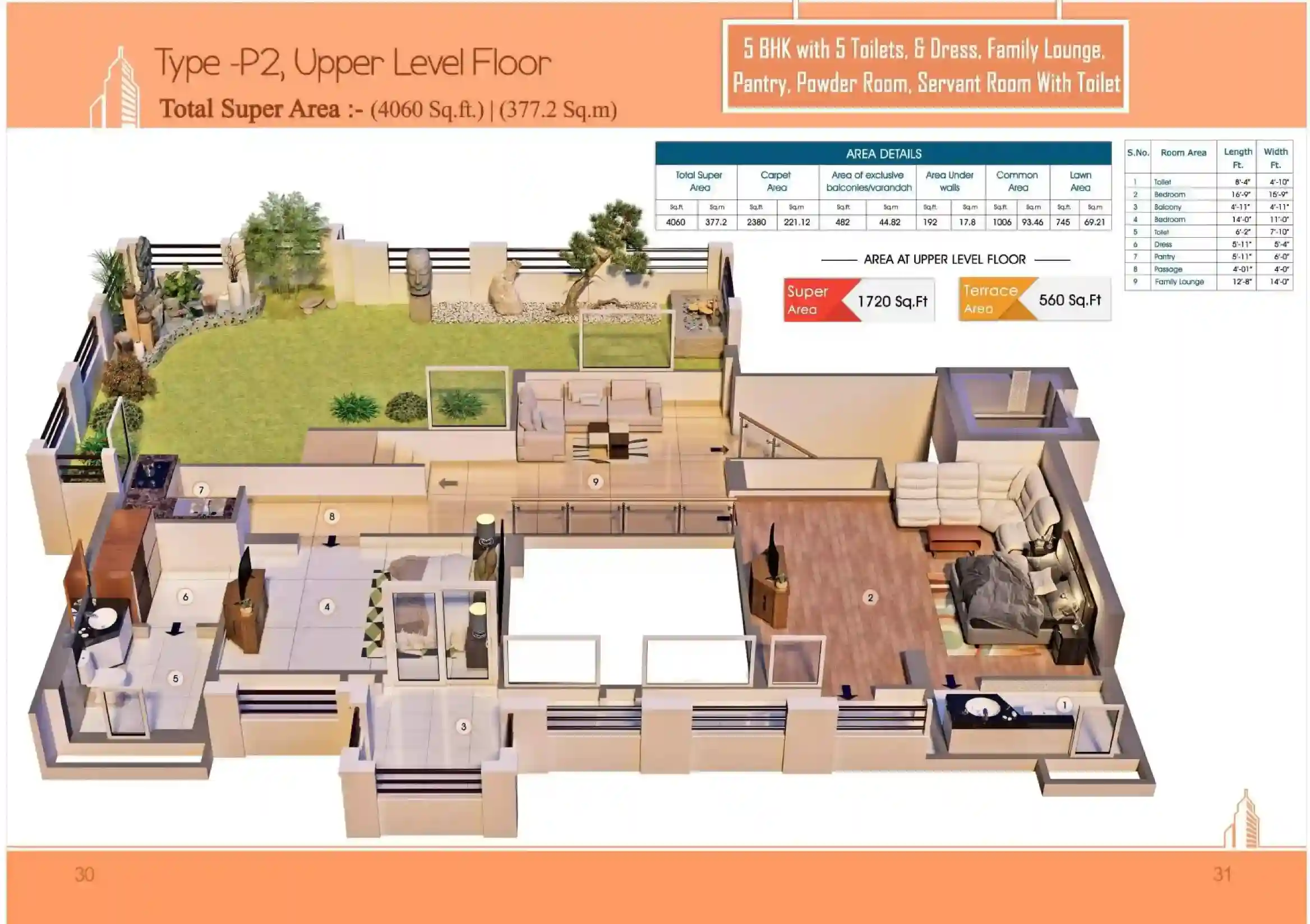 | 4 BHK + 4T | 2025 Sq.Ft | |