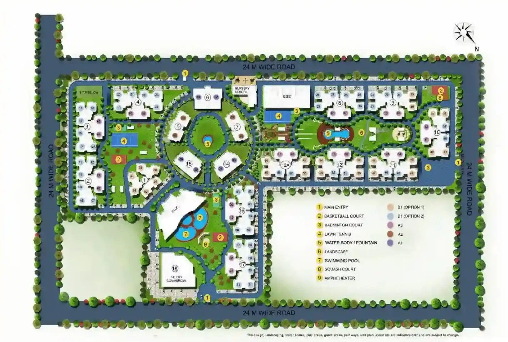 - One of the main features of the plan is the badminton court, which gives residents something to do. Apart from this, people can practice their serves and smashes on the lawn tennis court.