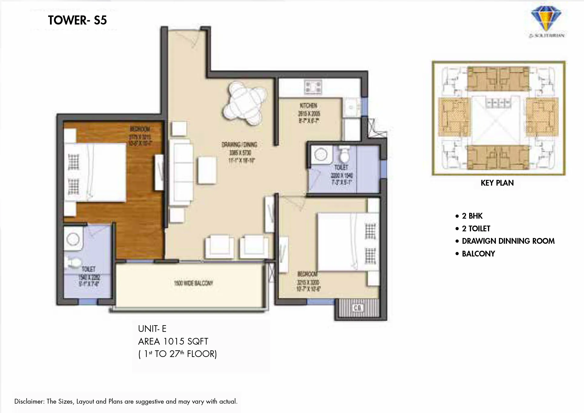 To understand the project in detail, you should check the Solitairian City Floor Plan. This housing society comes in different configurations. The apartments come in 2 BHK, 3 BHK, 4 BHK apartments and villas. The floor plan for 1 BHK comes in 665 Sq.Ft with 1 Bedroom, dining and living room and 1 Toilet and kitchen. The 2 BHK apartment is 1012 Sq.Ft and has 2 BHK flats with a Kitchen, living and dining area, 2 Toilets and balcony. Another 2BHK apartment also comes in 1080 Sq.Ft, with one balcony, two bedrooms and two toilets. The 4BHK apartment comes in 4350 Sq.Ft with four bedrooms, pooja/store room, TV lounge, Utility Room + Toilets, a Plunged Pool and a Balcony. There are also Villa apartments, which are great. The floor plan is spacious and is quite ventilated. You can check the website for the floor plan and choose the apartment or villa according to your preference.
