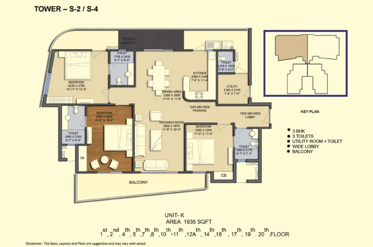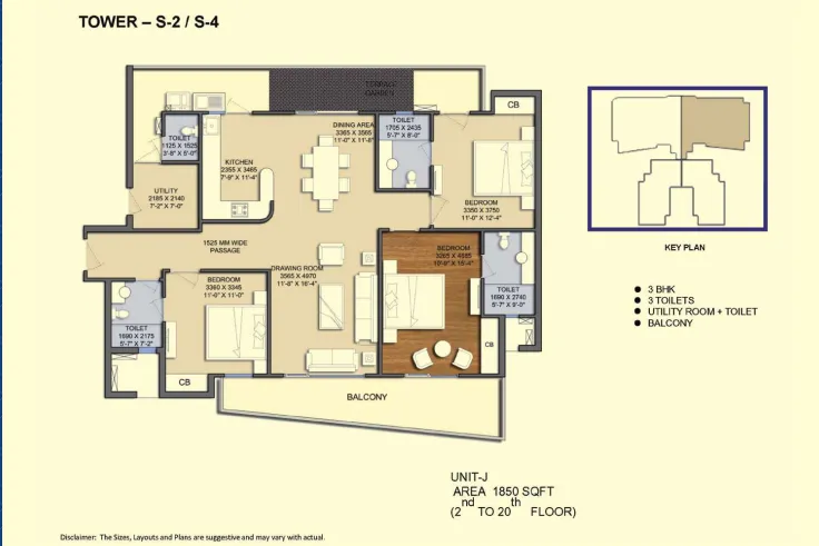 | 3 BHK + 3T | 1850 Sq.Ft | |