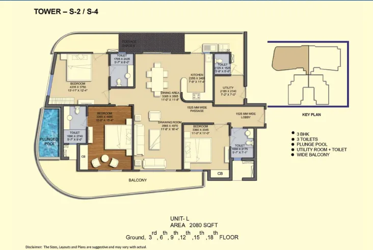 | 3 BHK + 3T | 2066 Sq.Ft | |