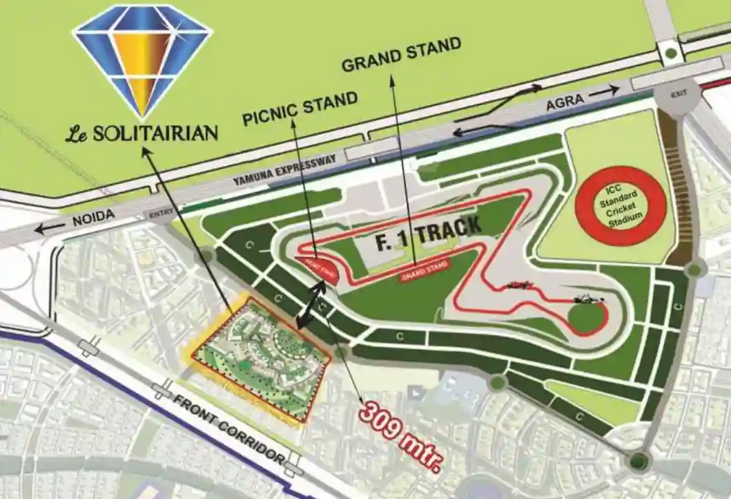 - At 27.4 kilometers from Solitairian City, Jewar Airport provides seamless air travel.